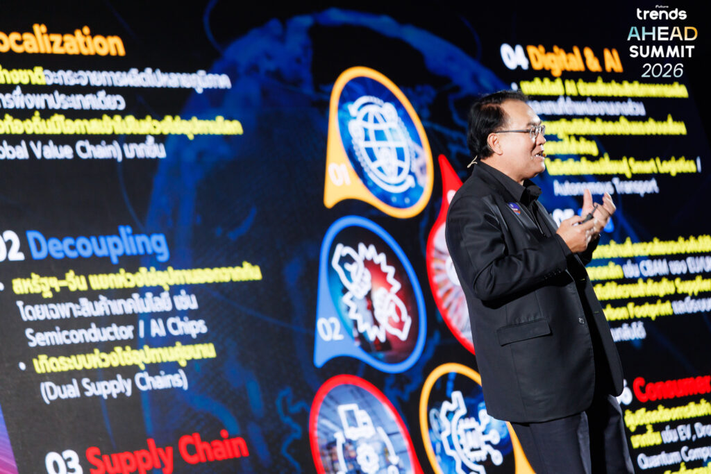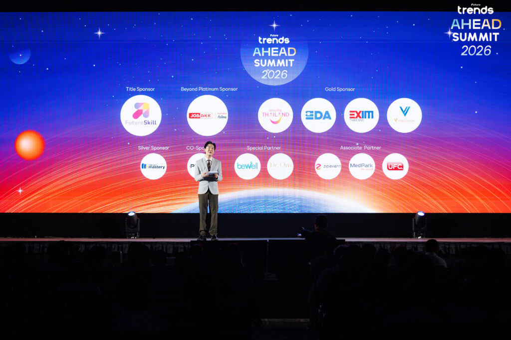 ปิดฉากลงไปอย่างงดงามและสมบูรณ์แบบสำหรับงานสัมมนาเทรนด์สุดยิ่งใหญ่ของไทย ‘Future Trends AHEAD SUMMIT 2026’ ซึ่งจัดขึ้นเมื่อวันที่ 10 กุมภาพันธ์ ที่ผ่านมา ณ รอยัล พารากอน ฮอลล์ ชั้น 5 สยามพารากอน ท่ามกลางบรรยากาศที่คับคั่งไปด้วยผู้บริหาร เจ้าของกิจการ และคนทำงานนับพันคนที่มาร่วมระดมสมองเพื่อค้นหาทางรอด ภายใต้ธีมหลัก ‘Thriving Beyond The Storm’ เพื่อร่วมกันค้นหาคำตอบว่า ‘เราจะเติบโตท่ามกลางพายุอย่างยั่งยืนได้อย่างไร’